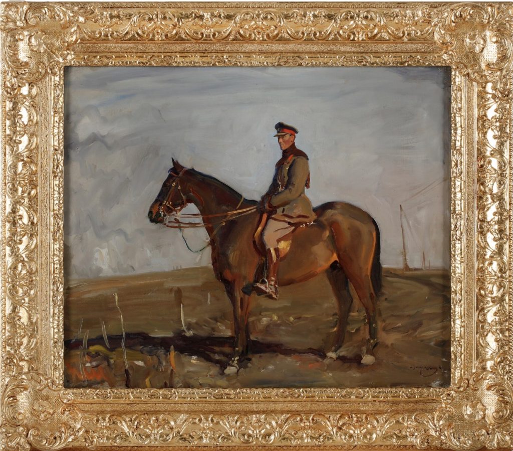 1918 Commissioned by Paul Konody to paint Canadian Cavalry Brigade in France. Significantly, includes a portrait of General Jack Seely on his horse Warrior. Returns to London, rents studio in Glebe Place from November.