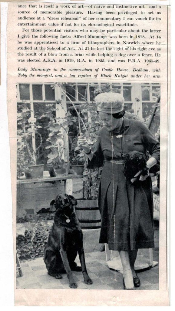 1928 Aged 50, given a retrospective exhibition at Norwich Castle Museum: Loan Collections of Pictures by A.J. Munnings R.A.. Privately