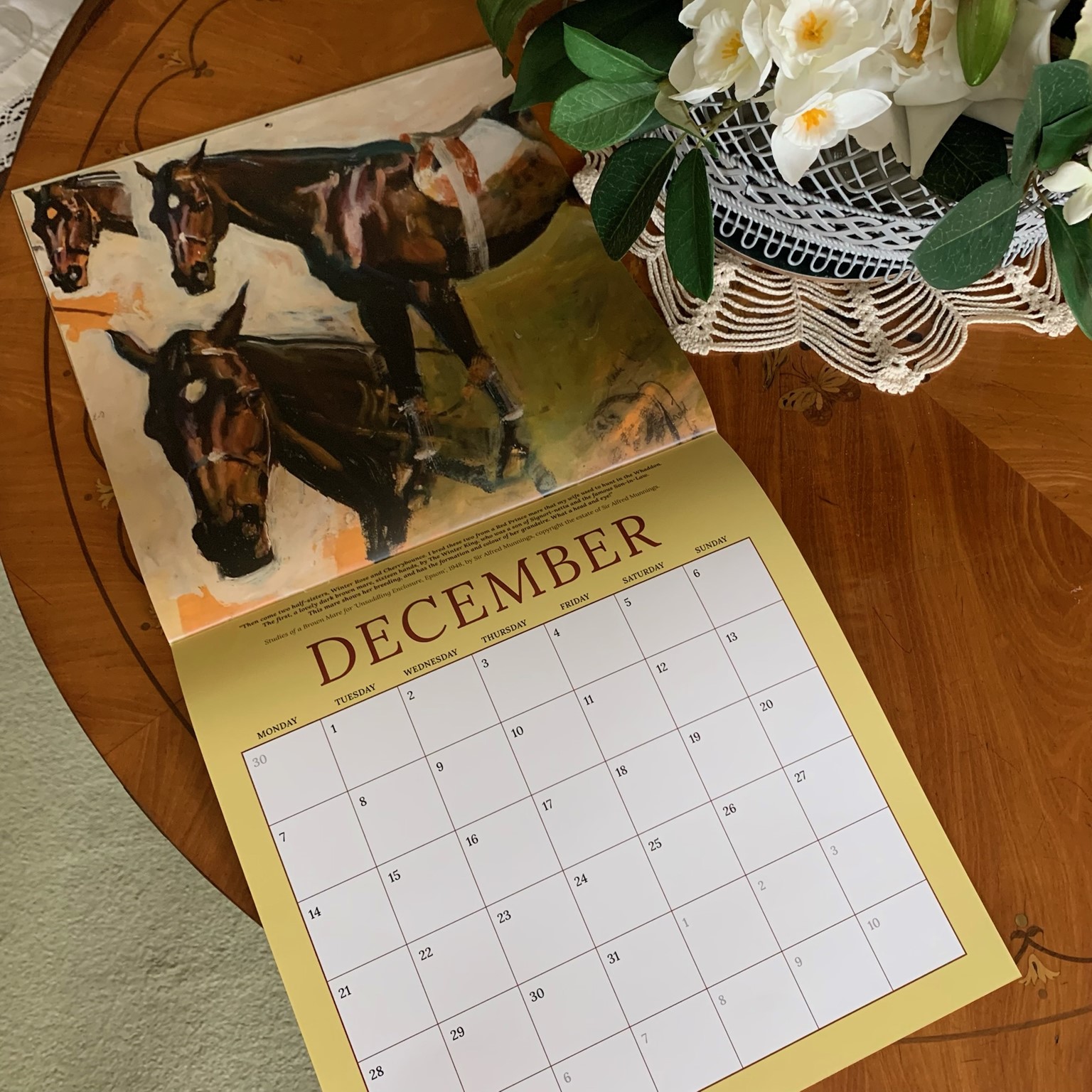 Each month is illustrated with a painting by Sir Alfred Munnings of the horses he owned throughout his life