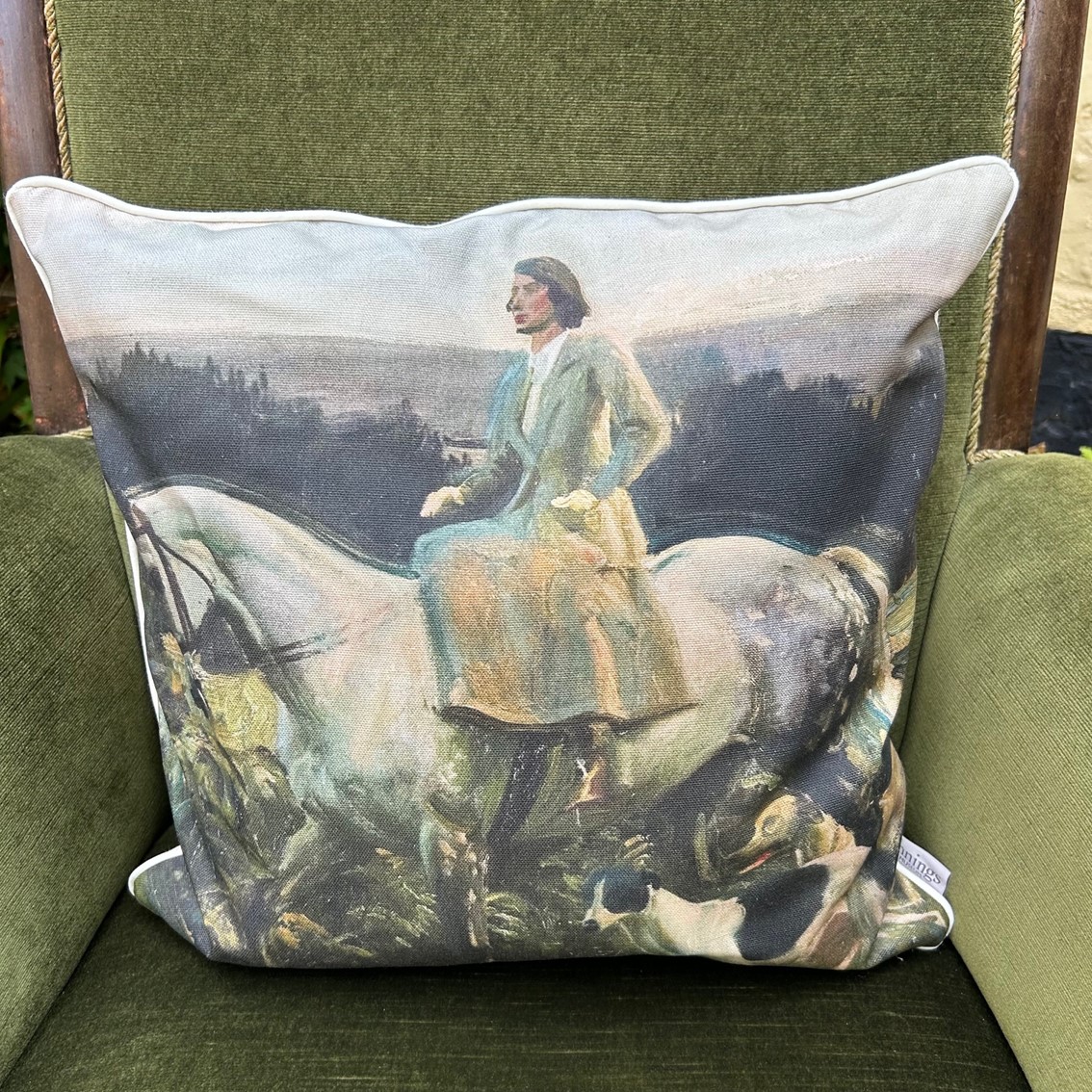 Hand made and finished in the UK from a Linen and Cotton blend.  The Cushion cover is finished with a cream, linen trim and the title of Munning’s Artwork is printed on the reverse.